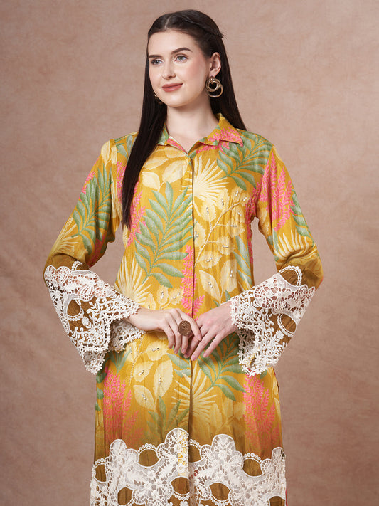 Ethnic Floral Printed A-Line Paneled Kurta with...