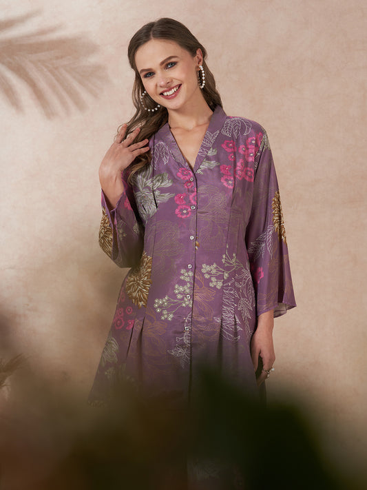 Ethnic Floral Printed & Embroidered Straight Fit...