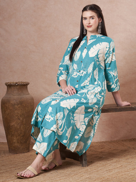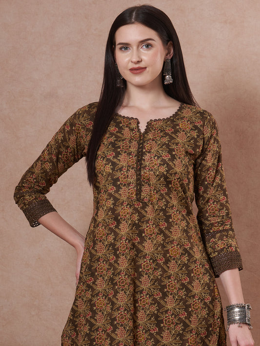Ethnic Floral Printed A-Line Flared Kurta with...