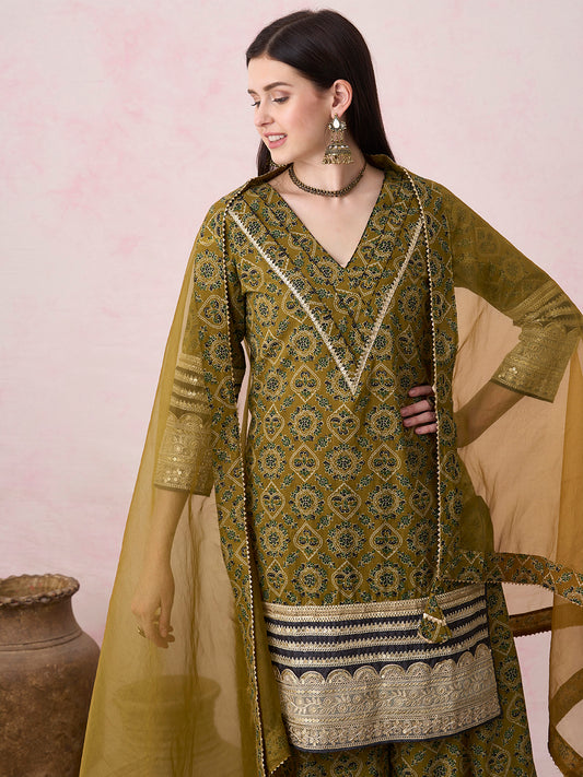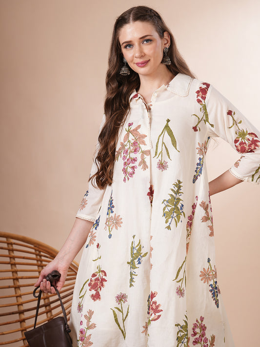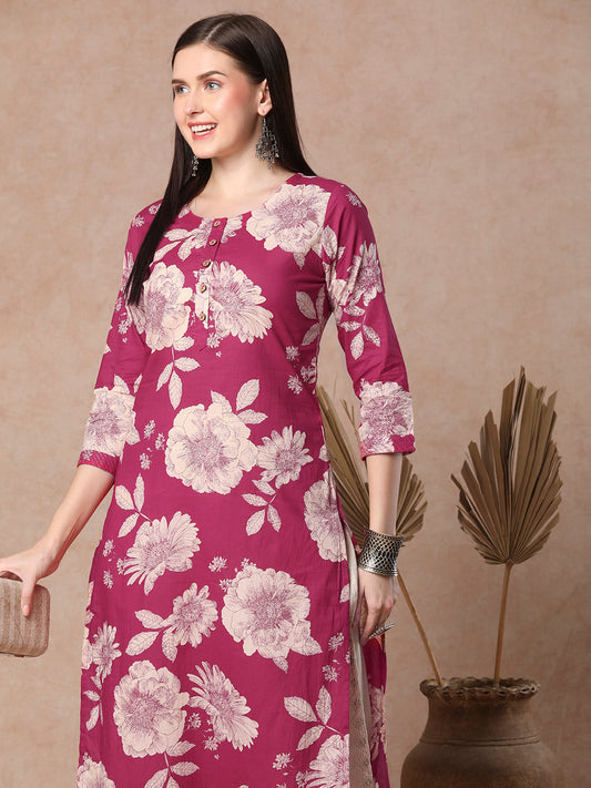 Ethnic Floral Printed A-Line Kurta with Palazzo...