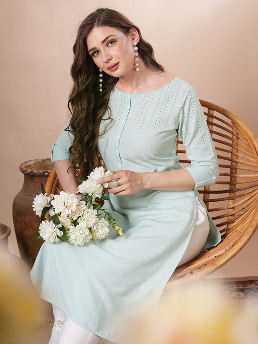 Solid Ethnic Printed & Embroidered Straight Kurta...