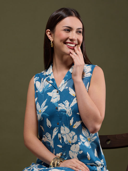 Abstract Floral Printed Straight Fit Co-ord Set...
