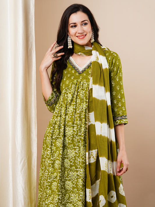 Ethnic Floral Printed & Embroidered Anarkali Kurta...