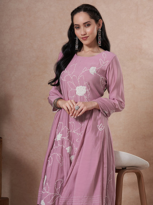 Solid French Knot Embroidered A-line Kurta with...