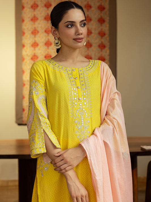 MRP (Inclusive of all taxes)Regular price ₹ 3,099.00₹ 3,099.00 Regular priceUnit price / per₹ 7,499.00Sale priceS M L XL 2XL add to cartSale{"id":7212087246934,"title":"Solid Dobby Design Mirror \u0026 Zari Emmbroidered Kurta with Pants \u0026 Dupatta - Yellow","handle":"solid-dobby-design-mirror-zari-emmbroidered-kurta-with-pants-dupatta-yellow","description":"\u003ch1\u003eHighlights\u003c\/h1\u003e\n\u003cp\u003e\u003cbr\u003e- Solid Straight Cut Kurta\u003cbr\u003e- Woven Dobby Design all over\u003cbr\u003e- Mirror, Zari \u0026amp; Sequins Embroidered all over\u003cbr\u003e- Paired with Solid Pants\u003cbr\u003e- Styled with Solid Dupatta\u003cbr\u003e- Zari Embroidered all over\u003c\/p\u003e\n\u003ch1\u003eFabric \u0026amp; Colour\u003c\/h1\u003e\n\u003cp\u003e\u003cbr\u003eTop Colour: Yellow\u003cbr\u003eTop Fabric: Cotton\u003cbr\u003eBottom Colour: Peach\u003cbr\u003eBottom Fabric: Pure Cotton\u003cbr\u003eDupatta Colour: Peach\u003cbr\u003eDupatta Fabric: Pure Cotton\u003c\/p\u003e\n\u003ch1\u003eSpecifications\u003c\/h1\u003e\n\u003cp\u003e\u003cbr\u003eTop Design: Solid\u003cbr\u003eTop Craft: Mirror work, Sequins, Embroidery\u003cbr\u003eTop Shape: Straight\u003cbr\u003eNeck: Round Neck\u003cbr\u003eSleeve Length: Three-Quarter Sleeves\u003cbr\u003eTop Length: Calf Length\u003cbr\u003eHemline: Straight\u003cbr\u003eSlit: Side Slits\u003c\/p\u003e\n\u003cp\u003eBottom Type: Trousers\u003cbr\u003eBottom Closure: Slip-On\u003cbr\u003eWaistband: Partially Elasticated\u003c\/p\u003e\n\u003cp\u003eDupatta Pattern: Dyed, Solid\u003cbr\u003eDupatta Border: Solid\u003c\/p\u003e\n\u003cp\u003eWash Care: Dry Clean\u003c\/p\u003e\n\u003cp\u003eMeasurement (in inches)\u003cbr\u003eLength – 45, Sleeves – 18,\u003cbr\u003eBottom – 40\u003c\/p\u003e\n\u003cp\u003eModel’s Height: 5’7”. Wearing Size S.\u003c\/p\u003e\n\u003ch1\u003eProduct Information\u003c\/h1\u003e\n\u003cp\u003e\u003cbr\u003eManufactured\/Packed\/Marketed By:\u003cbr\u003eFashor Lifestyle Pvt. Ltd.\u003cbr\u003e28\/30, Sudarshanpura Industrial Area,\u003cbr\u003eJaipur - 302006.\u003cbr\u003eCountry of Origin: India\u003c\/p\u003e","published_at":"2024-09-23T09:31:30+05:30","created_at":"2024-05-13T12:57:41+05:30","vendor":"Fashor","type":"3P Kurta Set","tags":["22044","2XL","above-3000","All Styles","bhaiduj","bs","casualwear","colour_yellow","craft_embroidery","craft_mirror-work","craft_sequins","design_solid","fabric_cotton","KURTI","kurtis","laxmipuja","meta-size-chart-","monsoo","S","shape_straight"],"price":309900,"price_min":309900,"price_max":309900,"available":true,"price_varies":false,"compare_at_price":749900,"compare_at_price_min":749900,"compare_at_price_max":749900,"compare_at_price_varies":false,"variants":[{"id":41767216676950,"title":"S","option1":"S","option2":null,"option3":null,"sku":"36-ST022044C4FS","requires_shipping":true,"taxable":false,"featured_image":{"id":33097841803350,"product_id":7212087246934,"position":1,"created_at":"2024-08-05T15:24:47+05:30","updated_at":"2024-08-05T15:24:49+05:30","alt":null,"width":1080,"height":1440,"src":"\/\/fashor.com\/cdn\/shop\/files\/26990_1.jpg?v=1722851689","variant_ids":[41281651802198,41281651834966,41281651867734,41281651900502,41767216676950]},"available":true,"name":"Solid Dobby Design Mirror \u0026 Zari Emmbroidered Kurta with Pants \u0026 Dupatta - Yellow - S","public_title":"S","options":["S"],"price":309900,"weight":0,"compare_at_price":749900,"inventory_quantity":3,"inventory_management":"shopify","inventory_policy":"deny","barcode":"","featured_media":{"alt":null,"id":25826002829398,"position":1,"preview_image":{"aspect_ratio":0.75,"height":1440,"width":1080,"src":"\/\/fashor.com\/cdn\/shop\/files\/26990_1.jpg?v=1722851689"}},"requires_selling_plan":false,"selling_plan_allocations":[],"quantity_rule":{"min":1,"max":null,"increment":1}},{"id":41281651802198,"title":"M","option1":"M","option2":null,"option3":null,"sku":"38-ST022044C4FS","requires_shipping":true,"taxable":false,"featured_image":{"id":33097841803350,"product_id":7212087246934,"position":1,"created_at":"2024-08-05T15:24:47+05:30","updated_at":"2024-08-05T15:24:49+05:30","alt":null,"width":1080,"height":1440,"src":"\/\/fashor.com\/cdn\/shop\/files\/26990_1.jpg?v=1722851689","variant_ids":[41281651802198,41281651834966,41281651867734,41281651900502,41767216676950]},"available":false,"name":"Solid Dobby Design Mirror \u0026 Zari Emmbroidered Kurta with Pants \u0026 Dupatta - Yellow - M","public_title":"M","options":["M"],"price":309900,"weight":0,"compare_at_price":749900,"inventory_quantity":0,"inventory_management":"shopify","inventory_policy":"deny","barcode":"","featured_media":{"alt":null,"id":25826002829398,"position":1,"preview_image":{"aspect_ratio":0.75,"height":1440,"width":1080,"src":"\/\/fashor.com\/cdn\/shop\/files\/26990_1.jpg?v=1722851689"}},"requires_selling_plan":false,"selling_plan_allocations":[],"quantity_rule":{"min":1,"max":null,"increment":1}},{"id":41281651834966,"title":"L","option1":"L","option2":null,"option3":null,"sku":"40-ST022044C4FS","requires_shipping":true,"taxable":false,"featured_image":{"id":33097841803350,"product_id":7212087246934,"position":1,"created_at":"2024-08-05T15:24:47+05:30","updated_at":"2024-08-05T15:24:49+05:30","alt":null,"width":1080,"height":1440,"src":"\/\/fashor.com\/cdn\/shop\/files\/26990_1.jpg?v=1722851689","variant_ids":[41281651802198,41281651834966,41281651867734,41281651900502,41767216676950]},"available":false,"name":"Solid Dobby Design Mirror \u0026 Zari Emmbroidered Kurta with Pants \u0026 Dupatta - Yellow - L","public_title":"L","options":["L"],"price":309900,"weight":0,"compare_at_price":749900,"inventory_quantity":0,"inventory_management":"shopify","inventory_policy":"deny","barcode":"","featured_media":{"alt":null,"id":25826002829398,"position":1,"preview_image":{"aspect_ratio":0.75,"height":1440,"width":1080,"src":"\/\/fashor.com\/cdn\/shop\/files\/26990_1.jpg?v=1722851689"}},"requires_selling_plan":fa