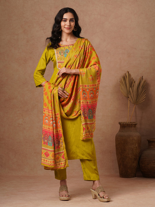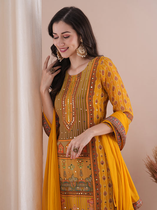 Ethnic Printed & Mirror Embroidered Straight Kurta...