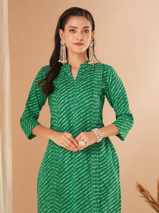 Ethnic Leheriya Printed Straight Fit Kurta -...