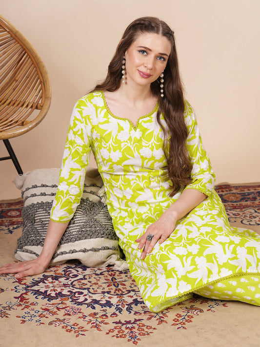 Ethnic Floral Printed Anarkali Flared Kurta with...