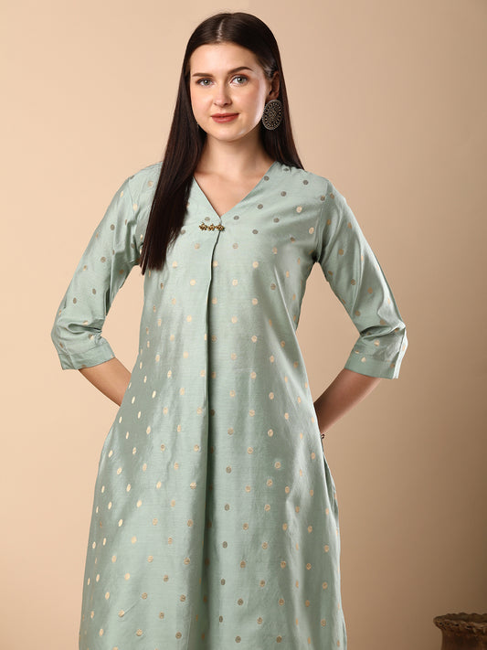 Solid Ethnic Woven A-Line Kurta with Pant...