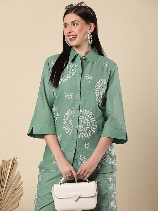 Solid Ethnic Woven & Mirror Embroidered Straight...