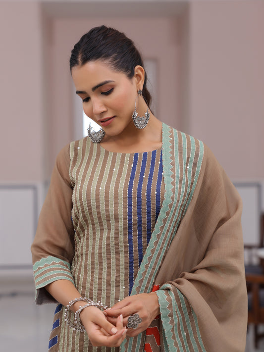 Ethnic Printed Zari, Sequins & Resham Embroidered...