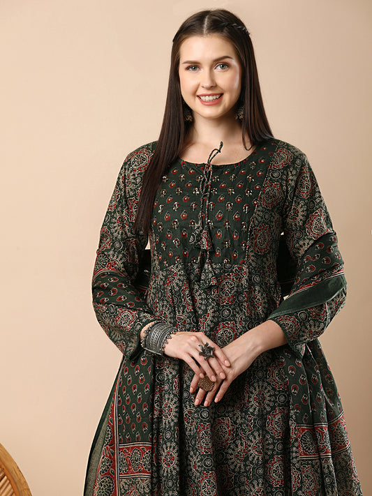 Ethnic Floral Printed & Embroidered Anarkali &...