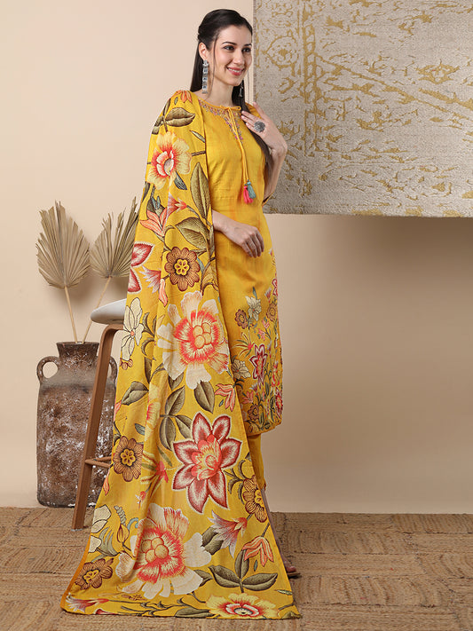 Floral Printed Hand Embroidered Straight Fit Tissue...