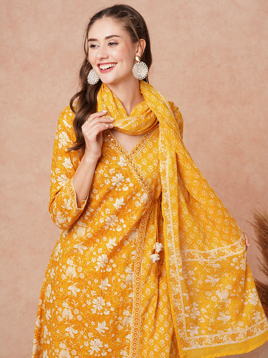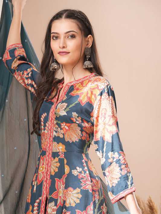 Ethnic Floral Printed A-Line Paneled Kurta with...