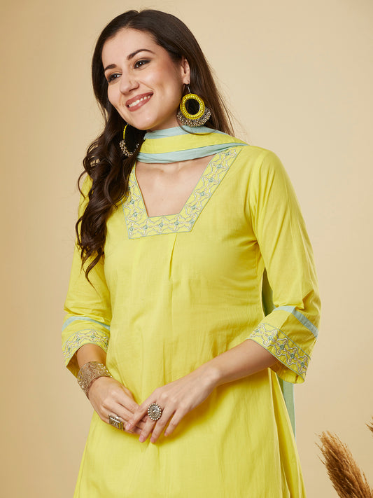 MRP (Inclusive of all taxes)Regular price ₹ 1,769.00₹ 1,769.00 Regular priceUnit price / perSale priceM L XL 2XL 3XL add to cart{"id":7484889530454,"title":"Solid Ethnic Embroidered A-Line Kurta with Pant \u0026 Dupatta - Yellow","handle":"solid-ethnic-embroidered-a-line-kurta-with-pant-dupatta-yellow","description":"\u003ch1\u003eHighlights\u003c\/h1\u003e\n\u003cp\u003e\u003cbr\u003e-A-Line Kurta\u003cbr\u003e-Ethnic Embroidered Neckline\u003cbr\u003e-Comes with Solid Matching Dupatta\u003c\/p\u003e\n\u003ch1\u003eFabric \u0026amp; Colour\u003c\/h1\u003e\n\u003cp\u003e\u003cbr\u003eTop Colour: Yellow\u003cbr\u003eTop Fabric: Cotton\u003cbr\u003eBottom Colour: Yellow\u003cbr\u003eBottom Fabric: Cotton Blend\u003cbr\u003eDupatta Colour: Green\u003cbr\u003eDupatta Fabric: Pure Cotton\u003c\/p\u003e\n\u003ch1\u003eSpecifications\u003c\/h1\u003e\n\u003cp\u003e\u003cbr\u003eTop Design: Solid\u003cbr\u003eTop Craft: Embroidery, Plain and Prints\u003cbr\u003eTop Shape: A-line\u003cbr\u003eNeck: V-Neck\u003cbr\u003eSleeve Length: Three-Quarter Sleeves\u003cbr\u003eTop Length: Calf Length\u003cbr\u003eHemline: Flared\u003cbr\u003e\u003c\/p\u003e\n\u003cp\u003eBottom Type: Trousers\u003cbr\u003eBottom Closure: Slip-On\u003cbr\u003eWaistband: Partially Elasticated\u003c\/p\u003e\n\u003cp\u003eDupatta Pattern: Solid\u003cbr\u003eDupatta Border: Solid\u003c\/p\u003e\n\u003cp\u003eWash Care: Hand Wash\u003c\/p\u003e\n\u003cp\u003eLength (in inches)\u003cbr\u003eKurta – 44, Sleeves – 17,\u003cbr\u003eBottom – 40\u003c\/p\u003e\n\u003cp\u003eModel’s Height: 5’7”. Wearing Size S.\u003c\/p\u003e\n\u003ch1\u003eProduct Information\u003c\/h1\u003e\n\u003cp\u003e\u003cbr\u003eManufactured\/Packed\/Marketed By:\u003cbr\u003eFashor Lifestyle Pvt. Ltd.\u003cbr\u003e28\/30, Sudarshanpura Industrial Area,\u003cbr\u003eJaipur - 302006.\u003cbr\u003eCountry of Origin: India\u003c\/p\u003e","published_at":"2025-01-08T12:35:24+05:30","created_at":"2025-01-08T12:06:04+05:30","vendor":"FASHOR","type":"3P Kurta Set","tags":["1001-2000","2001-3000","26520","2XL","All Styles","casualwear","colour_yellow","craft_embroidery","craft_plain-and-prints","design_solid","fabric_cotton","KURTI","kurtis","meta-size-chart-","monsoo","now-trending","shape_a-line"],"price":176900,"price_min":176900,"price_max":176900,"available":true,"price_varies":false,"compare_at_price":null,"compare_at_price_min":0,"compare_at_price_max":0,"compare_at_price_varies":false,"variants":[{"id":42030008074326,"title":"M","option1":"M","option2":null,"option3":null,"sku":"38-STA26520J4OS","requires_shipping":true,"taxable":false,"featured_image":{"id":33891122184278,"product_id":7484889530454,"position":3,"created_at":"2025-01-08T12:06:28+05:30","updated_at":"2025-06-09T19:10:36+05:30","alt":null,"width":1080,"height":1440,"src":"\/\/fashor.com\/cdn\/shop\/files\/29062_8.jpg?v=1749476436","variant_ids":[42030008074326,42030008107094,42030008139862,42030008172630,42030008205398]},"available":false,"name":"Solid Ethnic Embroidered A-Line Kurta with Pant \u0026 Dupatta - Yellow - M","public_title":"M","options":["M"],"price":176900,"weight":0,"compare_at_price":null,"inventory_quantity":0,"inventory_management":"shopify","inventory_policy":"deny","barcode":null,"featured_media":{"alt":null,"id":26355423051862,"position":3,"preview_image":{"aspect_ratio":0.75,"height":1440,"width":1080,"src":"\/\/fashor.com\/cdn\/shop\/files\/29062_8.jpg?v=1749476436"}},"requires_selling_plan":false,"selling_plan_allocations":[],"quantity_rule":{"min":1,"max":null,"increment":1}},{"id":42030008107094,"title":"L","option1":"L","option2":null,"option3":null,"sku":"40-STA26520J4OS","requires_shipping":true,"taxable":false,"featured_image":{"id":33891122184278,"product_id":7484889530454,"position":3,"created_at":"2025-01-08T12:06:28+05:30","updated_at":"2025-06-09T19:10:36+05:30","alt":null,"width":1080,"height":1440,"src":"\/\/fashor.com\/cdn\/shop\/files\/29062_8.jpg?v=1749476436","variant_ids":[42030008074326,42030008107094,42030008139862,42030008172630,42030008205398]},"available":false,"name":"Solid Ethnic Embroidered A-Line Kurta with Pant \u0026 Dupatta - Yellow - L","public_title":"L","options":["L"],"price":176900,"weight":0,"compare_at_price":null,"inventory_quantity":0,"inventory_management":"shopify","inventory_policy":"deny","barcode":null,"featured_media":{"alt":null,"id":26355423051862,"position":3,"preview_image":{"aspect_ratio":0.75,"height":1440,"width":1080,"src":"\/\/fashor.com\/cdn\/shop\/files\/29062_8.jpg?v=1749476436"}},"requires_selling_plan":false,"selling_plan_allocations":[],"quantity_rule":{"min":1,"max":null,"increment":1}},{"id":42030008139862,"title":"XL","option1":"XL","option2":null,"option3":null,"sku":"42-STA26520J4OS","requires_shipping":true,"taxable":false,"featured_image":{"id":33891122184278,"product_id":7484889530454,"position":3,"created_at":"2025-01-08T12:06:28+05:30","updated_at":"2025-06-09T19:10:36+05:30","alt":null,"width":1080,"height":1440,"src":"\/\/fashor.com\/cdn\/shop\/files\/29062_8.jpg?v=1749476436","variant_ids":[42030008074326,42030008107094,42030008139862,42030008172630,42030008205398]},"available":false,"name":"Solid Ethnic Embroidered A-Line Kurta with Pant \u0026 Dupatta - Yellow - XL","public_title":"XL","options":["XL"],"price":176900,"weight":0,"compare_at_price":null,"inventory_quantity":0,"inventory_management":"shopify","inventory_policy":"deny","barcode":null,"featured_media":{"alt":null,"id":26355423051862,"position":3,"preview_image":{"aspect_ratio":0.75,"height":1440,"width":1080,"src":"\/\/fashor.com\/cdn\/shop\/files\/29062_8.jpg?v=1749476436"}},"requires_selling_plan":false,"selling_plan_allocations":[],"quantity_rule":{"min":1,"max":null,"increment":1}},{"id":42030008172630,"title":"2XL","option1":"2XL","option2":null,"option3":null,"sku":"44-STA26520J4OS","requires_shipping":true,"taxable":false,"featured_image":{"id":33891122184278,"product_id":7484889530454,"position":3,"created_at":"