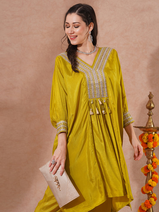 Solid Embroidered Kaftan Style Kurta with Pant...