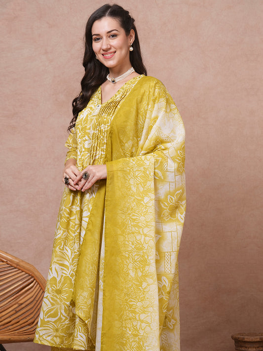 Ethnic Floral Printed Straight Fit Co-ord Set...