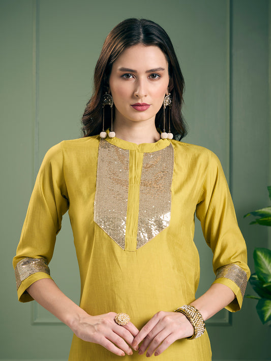 Solid Sequin Embroidered Straight Fit Co-ord Set...