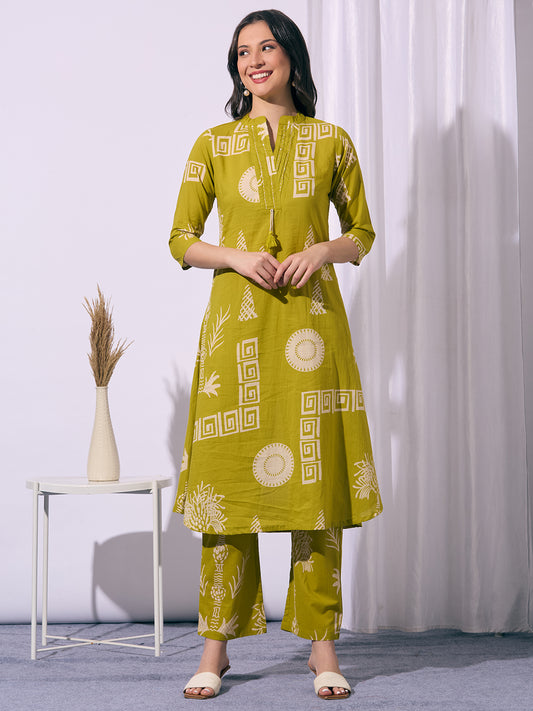 Ethnic Floral Printed A-Line Co-ord Set -...