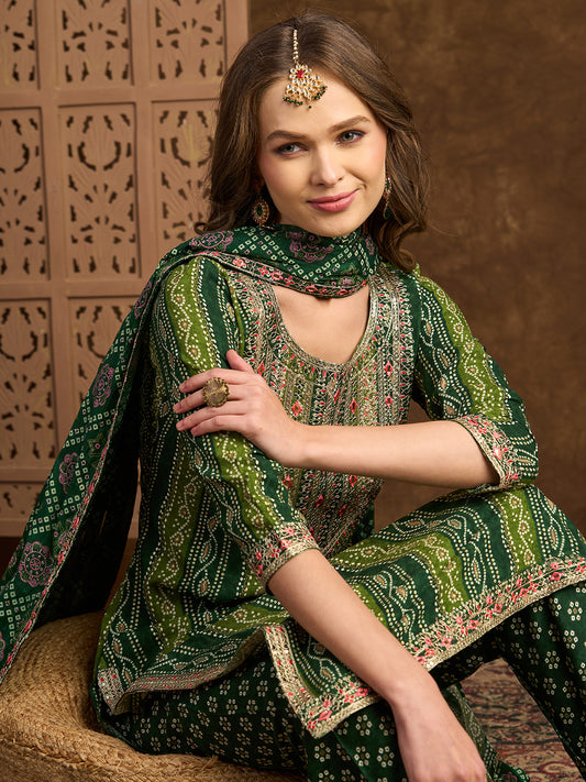 Bandhani Printed Straight Fit Kurta with Palazzo...