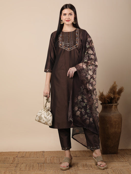 Solid Mirror Work Embroidered Straight Fit Co-ord...