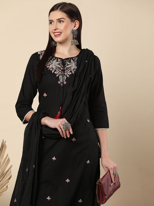 Ethnic Floral Printed & Embroidered Straight Fit...