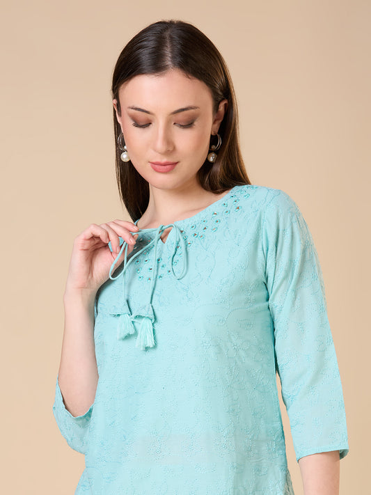 Solid Mirror Work Embroidered Straight Fit Co-ord...