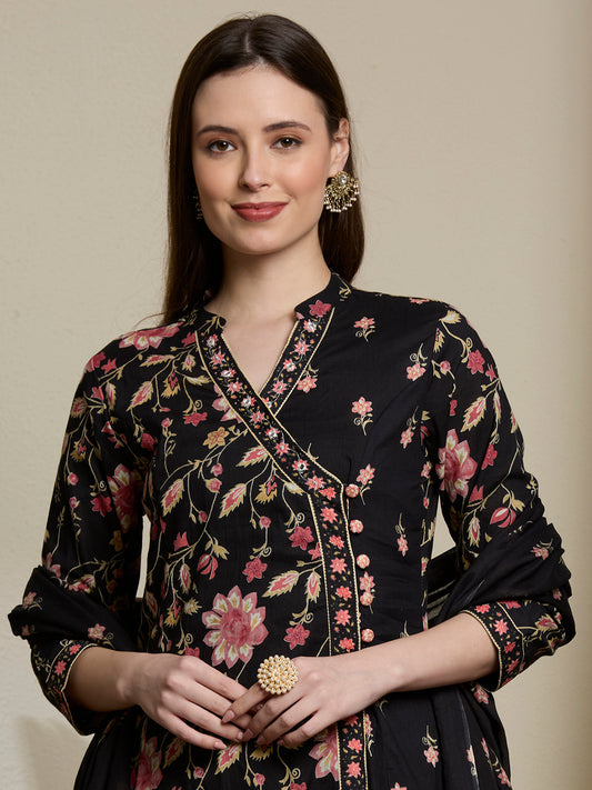 Ethnic Floral Printed Embroidered A-Line Kurta with...