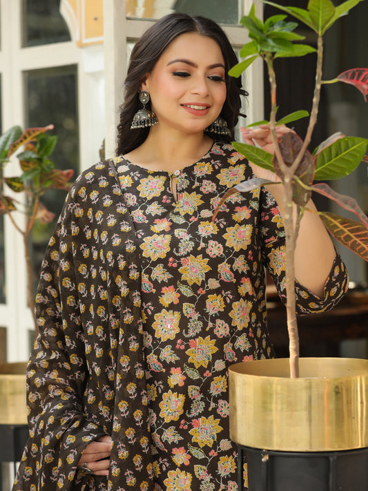 MRP (Inclusive of all taxes)Regular price ₹ 1,999.00₹ 1,999.00 Regular priceUnit price / perSale priceS M L XL 2XL 3XL 4XL 5XL 6XL add to cart{"id":7122919555158,"title":"Floral Printed Mirror \u0026 Zari Embroidered A-line Kurta with Pants \u0026 Dupatta - Coffee Brown","handle":"floral-printed-mirror-zari-embroidered-a-line-kurta-with-pants-dupatta-coffee-brown","description":"\u003ch1\u003eHighlights\u003c\/h1\u003e\n- Floral Printed A-line Paneled Kurta\u003cbr data-mce-fragment=\"1\"\u003e- Mirror, Resham \u0026amp; Zari Embroidered Upper Yoke\u003cbr data-mce-fragment=\"1\"\u003e- Paired with Floral Printed Pants\u003cbr data-mce-fragment=\"1\"\u003e- Styled with Floral Printed Dupatta\u003cbr data-mce-fragment=\"1\"\u003e\u003cbr data-mce-fragment=\"1\"\u003e\n\u003ch1\u003eFabric \u0026amp; Colour\u003c\/h1\u003e\nTop Colour: Coffee Brown\u003cbr data-mce-fragment=\"1\"\u003eTop Fabric: Cotton\u003cbr data-mce-fragment=\"1\"\u003eBottom Colour: Coffee Brown\u003cbr data-mce-fragment=\"1\"\u003eBottom Fabric: Pure Cotton\u003cbr data-mce-fragment=\"1\"\u003eDupatta Colour: Coffee Brown\u003cbr data-mce-fragment=\"1\"\u003eDupatta Fabric: Pure Cotton\u003cbr data-mce-fragment=\"1\"\u003e\n\u003ch1\u003eSpecifications\u003c\/h1\u003e\nTop Design: Floral print\u003cbr data-mce-fragment=\"1\"\u003eTop Craft: Mirror work, Embroidery\u003cbr data-mce-fragment=\"1\"\u003eTop Shape: A-line\u003cbr data-mce-fragment=\"1\"\u003eNeck: Keyhole Neck\u003cbr data-mce-fragment=\"1\"\u003eSleeve Length: Three-Quarter Sleeves\u003cbr data-mce-fragment=\"1\"\u003eTop Length: Calf Length\u003cbr data-mce-fragment=\"1\"\u003eHemline: Straight\u003cbr data-mce-fragment=\"1\"\u003eSlit: Side Slits\u003cbr data-mce-fragment=\"1\"\u003e\u003cbr data-mce-fragment=\"1\"\u003eBottom Type: Trousers\u003cbr data-mce-fragment=\"1\"\u003eBottom Closure: Slip-On\u003cbr data-mce-fragment=\"1\"\u003eWaistband: Partially Elasticated\u003cbr data-mce-fragment=\"1\"\u003e\u003cbr data-mce-fragment=\"1\"\u003eDupatta Pattern: Printed\u003cbr data-mce-fragment=\"1\"\u003eDupatta Border: Printed\u003cbr data-mce-fragment=\"1\"\u003e\u003cbr data-mce-fragment=\"1\"\u003eWash Care: Hand Wash\u003cbr data-mce-fragment=\"1\"\u003e\u003cbr data-mce-fragment=\"1\"\u003eMeasurement (in inches)\u003cbr data-mce-fragment=\"1\"\u003eLength – 44, Sleeves – 17,\u003cbr data-mce-fragment=\"1\"\u003eBottom – 40\u003cbr data-mce-fragment=\"1\"\u003e\u003cbr data-mce-fragment=\"1\"\u003eModel’s Height: 5’7”. Wearing Size S.\u003cbr data-mce-fragment=\"1\"\u003e\n\u003ch1\u003eProduct Information\u003c\/h1\u003e\nManufactured\/Packed\/Marketed By:\u003cbr data-mce-fragment=\"1\"\u003eFashor Lifestyle Pvt. Ltd.\u003cbr data-mce-fragment=\"1\"\u003e28\/30, Sudarshanpura Industrial Area,\u003cbr data-mce-fragment=\"1\"\u003eJaipur - 302006.\u003cbr data-mce-fragment=\"1\"\u003eCountry of Origin: India","published_at":"2024-07-12T10:42:55+05:30","created_at":"2024-04-18T12:49:58+05:30","vendor":"Fashor","type":"3P Kurta Set","tags":["1001-2000","20371","2XL","3XL","All Styles","bogo-zone","bs","casualwear","colour_brown","craft_embroidery","craft_mirror-work","design_floral-print","fabric_cotton","KURTI","kurtis","meta-size-chart-","monsoo","Sets under 2999","shape_a-line","XL"],"price":199900,"price_min":199900,"price_max":199900,"available":true,"price_varies":false,"compare_at_price":null,"compare_at_price_min":0,"compare_at_price_max":0,"compare_at_price_varies":false,"variants":[{"id":41685819949142,"title":"S","option1":"S","option2":null,"option3":null,"sku":"36-ST020371L3FS","requires_shipping":true,"taxable":false,"featured_image":{"id":33724206645334,"product_id":7122919555158,"position":4,"created_at":"2024-11-27T15:39:17+05:30","updated_at":"2025-06-09T20:31:04+05:30","alt":null,"width":1080,"height":1440,"src":"\/\/fashor.com\/cdn\/shop\/files\/28768_7.jpg?v=1749481264","variant_ids":[41096970993750,41096971059286,41096971092054,41096971124822,41096971157590,41685819949142,41685819981910,41685820014678,41685820047446]},"available":false,"name":"Floral Printed Mirror \u0026 Zari Embroidered A-line Kurta with Pants \u0026 Dupatta - Coffee Brown - S","public_title":"S","options":["S"],"price":199900,"weight":0,"compare_at_price":null,"inventory_quantity":0,"inventory_management":"shopify","inventory_policy":"deny","barcode":null,"featured_media":{"alt":null,"id":26239683887190,"position":4,"preview_image":{"aspect_ratio":0.75,"height":1440,"width":1080,"src":"\/\/fashor.com\/cdn\/shop\/files\/28768_7.jpg?v=1749481264"}},"requires_selling_plan":false,"selling_plan_allocations":[],"quantity_rule":{"min":1,"max":null,"increment":1}},{"id":41096970993750,"title":"M","option1":"M","option2":null,"option3":null,"sku":"38-ST020371L3FS","requires_shipping":true,"taxable":false,"featured_image":{"id":33724206645334,"product_id":7122919555158,"position":4,"created_at":"2024-11-27T15:39:17+05:30","updated_at":"2025-06-09T20:31:04+05:30","alt":null,"width":1080,"height":1440,"src":"\/\/fashor.com\/cdn\/shop\/files\/28768_7.jpg?v=1749481264","variant_ids":[41096970993750,41096971059286,41096971092054,41096971124822,41096971157590,41685819949142,41685819981910,41685820014678,41685820047446]},"available":false,"name":"Floral Printed Mirror \u0026 Zari Embroidered A-line Kurta with Pants \u0026 Dupatta - Coffee Brown - M","public_title":"M","options":["M"],"price":199900,"weight":0,"compare_at_price":null,"inventory_quantity":0,"inventory_management":"shopify","inventory_policy":"deny","barcode":null,"featured_media":{"alt":null,"id":26239683887190,"position":4,"preview_image":{"aspect_ratio":0.75,"height":1440,"width":1080,"src":"\/\/fashor.com\/cdn\/shop\/files\/28768_7.jpg?v=1749481264"}},"requires_selling_plan":false,"selling_plan_allocations":[],"quantity_rule":{"min":1,"max":null,"increment":1}},{"id":41096971059286,"title":"L","option1":"L","option2":null,"option3":null,"sku":"40-ST020371L3FS","requires_shipping":true,"tax
