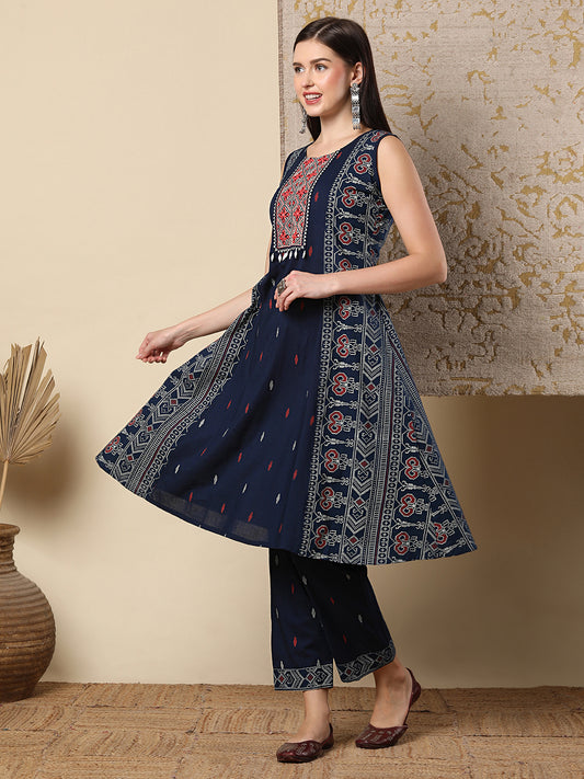 Ethnic Printed & Embroidered Anarkali Flared Midi...