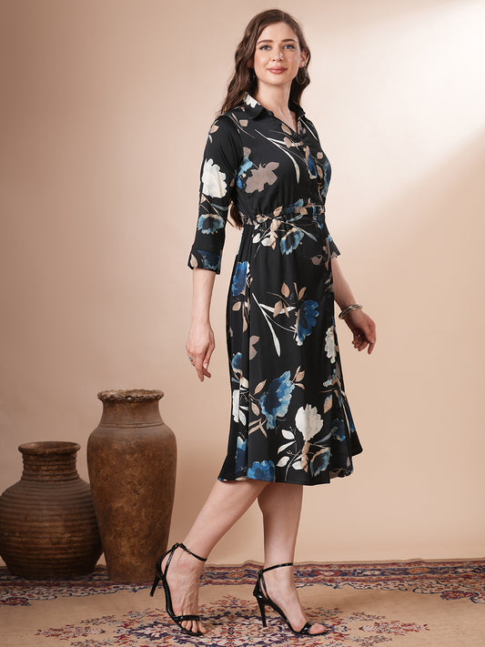 Abstract Floral Printed A-Line Flared Midi Dress...