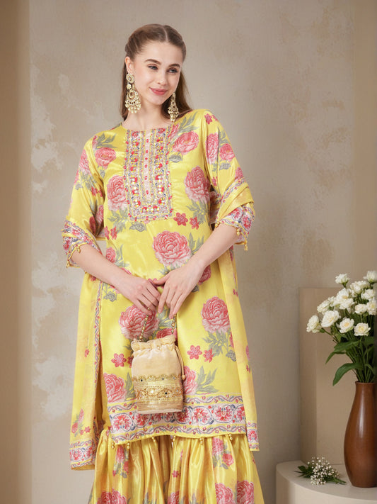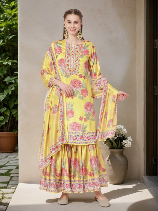Ethnic Floral Printed Anarkali Flared Kurta with...