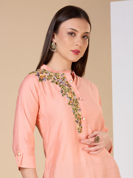 Solid Floral Hand Embroidered Straight Fit Kurta...