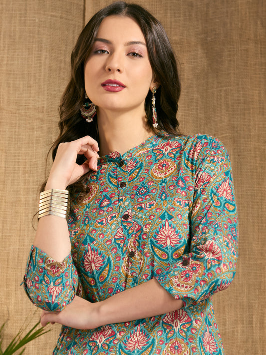 Ethnic Floral printed Straight Fit Kurta -...