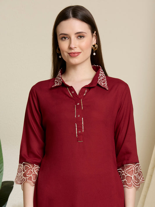 Festive Ethnic Hand Embroidered Straight Fit Kurta...