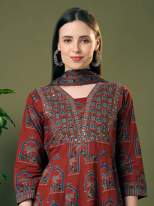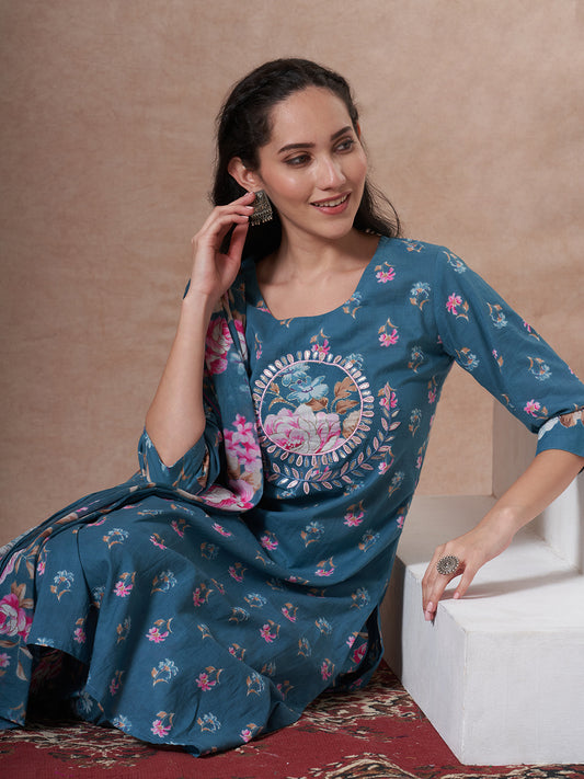 Ethnic Floral Printed Anarkali Flared Kurta with...