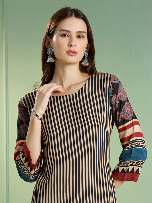 Ethnic Stripes Printed Straight Fit Kurta -...