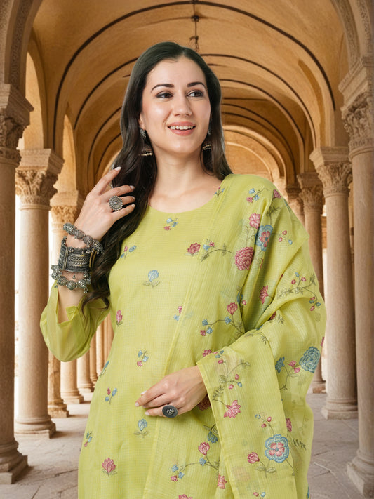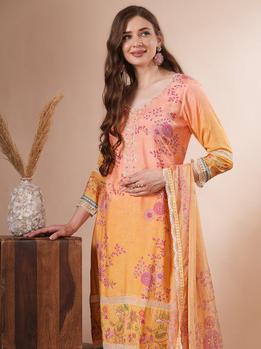 Ethnic Floral Printed & Embroidered Straight Kurta...
