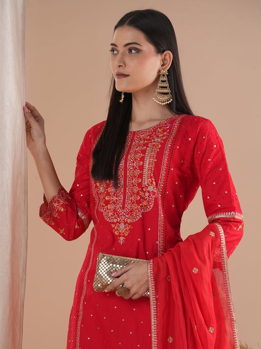 MRP (Inclusive of all taxes)Regular price ₹ 1,599.00₹ 1,599.00 Regular priceUnit price / per₹ 4,499.00Sale priceM L XL 2XL 3XL add to cartSale{"id":7526618005590,"title":"Solid Ethnic Floral Embroidered Straight Fit Kurta with Pant and Dupatta - Red","handle":"solid-ethnic-floral-embroidered-straight-fit-kurta-with-pant-and-dupatta-red","description":"\u003ch1\u003eHighlights\u003c\/h1\u003e\n\u003cp\u003e\u003cbr\u003e-This straight fit kurta adorned with beautiful resham embroidery at yoke, paired with solid pant and a floral printed dupatta is a perfect fit for light festivities.\u003c\/p\u003e\n\u003ch1\u003eFabric \u0026amp; Colour\u003c\/h1\u003e\n\u003cp\u003e\u003cbr\u003eTop Colour: Red\u003cbr\u003eTop Fabric: Muslin Silk\u003cbr\u003eBottom Colour: Red\u003cbr\u003eBottom Fabric: Muslin Silk\u003cbr\u003eDupatta Colour: Red\u003cbr\u003eDupatta Fabric: Muslin Silk\u003c\/p\u003e\n\u003ch1\u003eSpecifications\u003c\/h1\u003e\n\u003cp\u003e\u003cbr\u003eTop Design: Solid\u003cbr\u003eTop Craft: Embroidery, Plain and Prints\u003cbr\u003eTop Shape: Straight\u003cbr\u003eNeck: Round Neck\u003cbr\u003eSleeve Length: Three-Quarter Sleeves\u003cbr\u003eTop Length: Knee Length\u003cbr\u003eHemline: Straight\u003cbr\u003eSlit: Side Slits\u003c\/p\u003e\n\u003cp\u003eBottom Type: Trousers\u003cbr\u003eBottom Closure: Slip-On\u003cbr\u003eWaistband: Partially Elasticated\u003c\/p\u003e\n\u003cp\u003eDupatta Pattern: Printed\u003cbr\u003eDupatta Border: Printed\u003c\/p\u003e\n\u003cp\u003eWash Care: Hand Wash\u003c\/p\u003e\n\u003cp\u003eLength (in inches)\u003cbr\u003eKurta – 45, Sleeves – 17,\u003cbr\u003eBottom – 40\u003c\/p\u003e\n\u003cp\u003eModel’s Height: 5’7”. Wearing Size S.\u003c\/p\u003e\n\u003ch1\u003eProduct Information\u003c\/h1\u003e\n\u003cp\u003e\u003cbr\u003eManufactured\/Packed\/Marketed By:\u003cbr\u003eFashor Lifestyle Pvt. Ltd.\u003cbr\u003e28\/30, Sudarshanpura Industrial Area,\u003cbr\u003eJaipur - 302006.\u003cbr\u003eCountry of Origin: India\u003c\/p\u003e","published_at":"2025-03-21T20:38:14+05:30","created_at":"2025-03-21T16:08:35+05:30","vendor":"FASHOR","type":"3P Kurta Set","tags":["1001-2000","27461","3XL","All Styles","casualwear","colour_red","craft_embroidery","craft_plain-and-prints","design_solid","fabric_muslin-silk","KURTI","kurtis","meta-size-chart-","monsoo","shape_straight"],"price":159900,"price_min":159900,"price_max":159900,"available":true,"price_varies":false,"compare_at_price":449900,"compare_at_price_min":449900,"compare_at_price_max":449900,"compare_at_price_varies":false,"variants":[{"id":42200934514774,"title":"M","option1":"M","option2":null,"option3":null,"sku":"38-STA27461L4FS","requires_shipping":true,"taxable":false,"featured_image":{"id":34190556364886,"product_id":7526618005590,"position":3,"created_at":"2025-03-21T20:36:29+05:30","updated_at":"2025-06-09T18:36:32+05:30","alt":null,"width":1080,"height":1440,"src":"\/\/fashor.com\/cdn\/shop\/files\/29870_8.jpg?v=1749474392","variant_ids":[42200934514774,42200934547542,42200934580310,42200934613078,42200934645846]},"available":false,"name":"Solid Ethnic Floral Embroidered Straight Fit Kurta with Pant and Dupatta - Red - M","public_title":"M","options":["M"],"price":159900,"weight":0,"compare_at_price":449900,"inventory_quantity":0,"inventory_management":"shopify","inventory_policy":"deny","barcode":null,"featured_media":{"alt":null,"id":26597915754582,"position":3,"preview_image":{"aspect_ratio":0.75,"height":1440,"width":1080,"src":"\/\/fashor.com\/cdn\/shop\/files\/29870_8.jpg?v=1749474392"}},"requires_selling_plan":false,"selling_plan_allocations":[],"quantity_rule":{"min":1,"max":null,"increment":1}},{"id":42200934547542,"title":"L","option1":"L","option2":null,"option3":null,"sku":"40-STA27461L4FS","requires_shipping":true,"taxable":false,"featured_image":{"id":34190556364886,"product_id":7526618005590,"position":3,"created_at":"2025-03-21T20:36:29+05:30","updated_at":"2025-06-09T18:36:32+05:30","alt":null,"width":1080,"height":1440,"src":"\/\/fashor.com\/cdn\/shop\/files\/29870_8.jpg?v=1749474392","variant_ids":[42200934514774,42200934547542,42200934580310,42200934613078,42200934645846]},"available":false,"name":"Solid Ethnic Floral Embroidered Straight Fit Kurta with Pant and Dupatta - Red - L","public_title":"L","options":["L"],"price":159900,"weight":0,"compare_at_price":449900,"inventory_quantity":0,"inventory_management":"shopify","inventory_policy":"deny","barcode":null,"featured_media":{"alt":null,"id":26597915754582,"position":3,"preview_image":{"aspect_ratio":0.75,"height":1440,"width":1080,"src":"\/\/fashor.com\/cdn\/shop\/files\/29870_8.jpg?v=1749474392"}},"requires_selling_plan":false,"selling_plan_allocations":[],"quantity_rule":{"min":1,"max":null,"increment":1}},{"id":42200934580310,"title":"XL","option1":"XL","option2":null,"option3":null,"sku":"42-STA27461L4FS","requires_shipping":true,"taxable":false,"featured_image":{"id":34190556364886,"product_id":7526618005590,"position":3,"created_at":"2025-03-21T20:36:29+05:30","updated_at":"2025-06-09T18:36:32+05:30","alt":null,"width":1080,"height":1440,"src":"\/\/fashor.com\/cdn\/shop\/files\/29870_8.jpg?v=1749474392","variant_ids":[42200934514774,42200934547542,42200934580310,42200934613078,42200934645846]},"available":false,"name":"Solid Ethnic Floral Embroidered Straight Fit Kurta with Pant and Dupatta - Red - XL","public_title":"XL","options":["XL"],"price":159900,"weight":0,"compare_at_price":449900,"inventory_quantity":0,"inventory_management":"shopify","inventory_policy":"deny","barcode":null,"featured_media":{"alt":null,"id":26597915754582,"position":3,"preview_image":{"aspect_ratio":0.75,"height":1440,"width":1080,"src":"\/\/fashor.com\/cdn\/shop\/files\/29870_8.jpg?v=1749474392"}},"requires_selling_plan":false,"selling_plan_allocations":[],"quantity_rule":{"min":1,"max":null,"increment":1}},{"id":42200934613078,"title":"2XL","option1":"2XL","option2":null,"option3":null,"sku":"44-STA2746