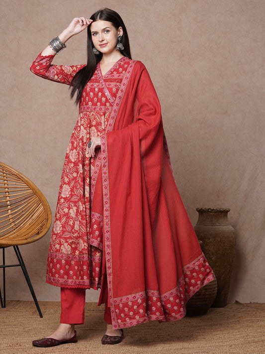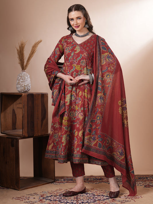 Floral Printed Embroidered Anarkali Flared Kurta with...