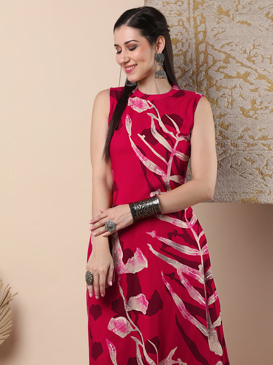 Abstract Floral Printed A-Line Co-ord Set -Red