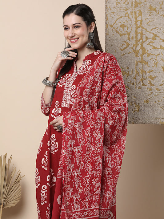 Ethnic Floral Printed A-Line Kurta with Palazzo...