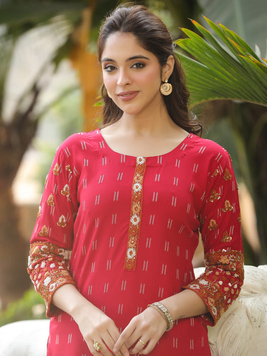 Solid Ethnic Embroidered Straight Kurta with Pant...