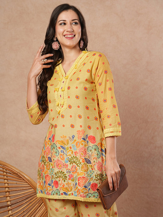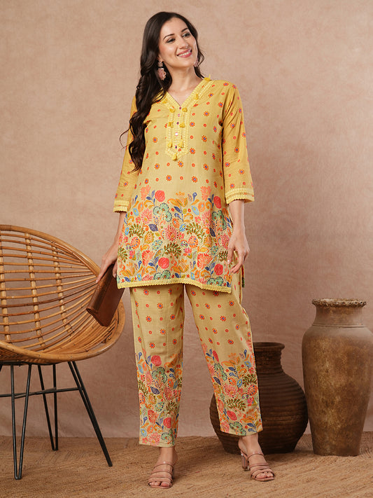 Floral Schiffli Embroidered Straight Fit Co-ord Set...