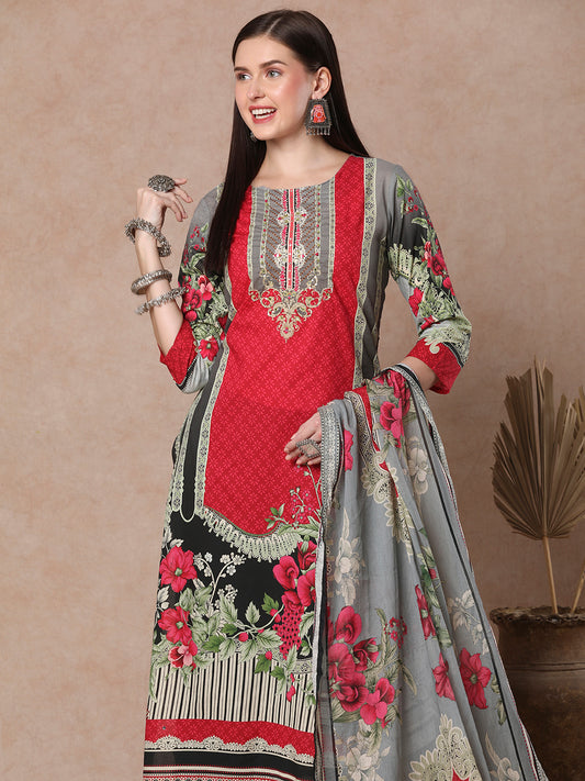 Ethnic Ornamental Printed & Embroidered Straight Kurta...