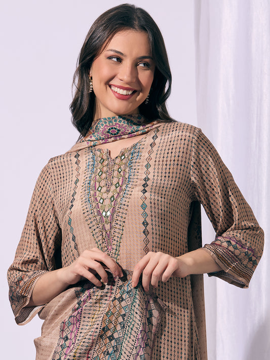 Ethnic Printed Embroidered Straight Kurta with Pant...