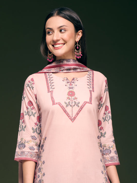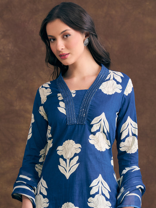 Ethnic Floral Printed Embroidered Straight Fit Kurta...