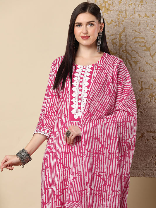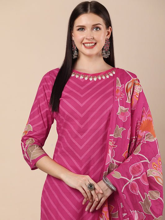 MRP (Inclusive of all taxes)Regular price ₹ 1,349.00₹ 1,349.00 Regular priceUnit price / per₹ 3,399.00Sale priceM L XL 2XL add to cartSale{"id":7541200224342,"title":"Ethnic Stripes Printed \u0026 Embroidered Straight Kurta with Pant \u0026 Dupatta - Pink","handle":"ethnic-stripes-printed-embroidered-straight-kurta-with-pant-dupatta-pink","description":"\u003ch1\u003eHighlights\u003c\/h1\u003e\n\u003cp\u003e\u003cbr\u003e-This straight fit kurta with ethnic stripes prints at front along with thread embroidered work, paired with printed bottom and printed complementing dupatta, this style is perfect for everyday wear.\u003c\/p\u003e\n\u003ch1\u003eFabric \u0026amp; Colour\u003c\/h1\u003e\n\u003cp\u003e\u003cbr\u003eTop Colour: Pink\u003cbr\u003eTop Fabric: Cotton\u003cbr\u003eBottom Colour: Pink\u003cbr\u003eBottom Fabric: Cotton Blend\u003cbr\u003eDupatta Colour: Pink\u003cbr\u003eDupatta Fabric: Pure Cotton\u003c\/p\u003e\n\u003ch1\u003eSpecifications\u003c\/h1\u003e\n\u003cp\u003e\u003cbr\u003eTop Design: Floral print, Ethnic print\u003cbr\u003eTop Craft: Sequins, Embroidery, Plain and Prints\u003cbr\u003eTop Shape: Straight\u003cbr\u003eNeck: Round Neck\u003cbr\u003eSleeve Length: Three-Quarter Sleeves\u003cbr\u003eTop Length: Knee Length\u003cbr\u003eHemline: Scalloped\u003cbr\u003eSlit: Side Slits\u003c\/p\u003e\n\u003cp\u003eBottom Type: Trousers\u003cbr\u003eBottom Closure: Slip-On\u003cbr\u003eWaistband: Partially Elasticated\u003c\/p\u003e\n\u003cp\u003eDupatta Pattern: Printed\u003cbr\u003eDupatta Border: Printed\u003c\/p\u003e\n\u003cp\u003eWash Care: Hand Wash\u003c\/p\u003e\n\u003cp\u003eLength (in inches)\u003cbr\u003eKurta – 45, Sleeves – 16,\u003cbr\u003eBottom – 45\u003c\/p\u003e\n\u003cp\u003eModel’s Height: 5’7”. Wearing Size S.\u003c\/p\u003e\n\u003ch1\u003eProduct Information\u003c\/h1\u003e\n\u003cp\u003e\u003cbr\u003eManufactured\/Packed\/Marketed By:\u003cbr\u003eFashor Lifestyle Pvt. Ltd.\u003cbr\u003e28\/30, Sudarshanpura Industrial Area,\u003cbr\u003eJaipur - 302006.\u003cbr\u003eCountry of Origin: India\u003c\/p\u003e","published_at":"2025-04-16T15:29:21+05:30","created_at":"2025-04-16T14:46:09+05:30","vendor":"FASHOR","type":"3P Kurta Set","tags":["1001-2000","29905","All Styles","casualwear","colour_pink","craft_embroidery","craft_plain-and-prints","craft_sequins","design_ethnic-print","design_floral-print","fabric_cotton","KURTI","kurtis","L","M","meta-size-chart-","now-trending","shape_straight"],"price":134900,"price_min":134900,"price_max":134900,"available":true,"price_varies":false,"compare_at_price":339900,"compare_at_price_min":339900,"compare_at_price_max":339900,"compare_at_price_varies":false,"variants":[{"id":42251992006742,"title":"M","option1":"M","option2":null,"option3":null,"sku":"38-STA29905B5FS","requires_shipping":true,"taxable":false,"featured_image":{"id":34283250516054,"product_id":7541200224342,"position":5,"created_at":"2025-04-16T14:46:44+05:30","updated_at":"2025-04-16T14:47:09+05:30","alt":null,"width":1080,"height":1440,"src":"\/\/fashor.com\/cdn\/shop\/files\/30646_10.jpg?v=1744795029","variant_ids":[42251992006742,42251992039510,42251992072278,42251992105046]},"available":true,"name":"Ethnic Stripes Printed \u0026 Embroidered Straight Kurta with Pant \u0026 Dupatta - Pink - M","public_title":"M","options":["M"],"price":134900,"weight":0,"compare_at_price":339900,"inventory_quantity":1,"inventory_management":"shopify","inventory_policy":"deny","barcode":"","featured_media":{"alt":null,"id":26661211504726,"position":5,"preview_image":{"aspect_ratio":0.75,"height":1440,"width":1080,"src":"\/\/fashor.com\/cdn\/shop\/files\/30646_10.jpg?v=1744795029"}},"requires_selling_plan":false,"selling_plan_allocations":[],"quantity_rule":{"min":1,"max":null,"increment":1}},{"id":42251992039510,"title":"L","option1":"L","option2":null,"option3":null,"sku":"40-STA29905B5FS","requires_shipping":true,"taxable":false,"featured_image":{"id":34283250516054,"product_id":7541200224342,"position":5,"created_at":"2025-04-16T14:46:44+05:30","updated_at":"2025-04-16T14:47:09+05:30","alt":null,"width":1080,"height":1440,"src":"\/\/fashor.com\/cdn\/shop\/files\/30646_10.jpg?v=1744795029","variant_ids":[42251992006742,42251992039510,42251992072278,42251992105046]},"available":true,"name":"Ethnic Stripes Printed \u0026 Embroidered Straight Kurta with Pant \u0026 Dupatta - Pink - L","public_title":"L","options":["L"],"price":134900,"weight":0,"compare_at_price":339900,"inventory_quantity":1,"inventory_management":"shopify","inventory_policy":"deny","barcode":"","featured_media":{"alt":null,"id":26661211504726,"position":5,"preview_image":{"aspect_ratio":0.75,"height":1440,"width":1080,"src":"\/\/fashor.com\/cdn\/shop\/files\/30646_10.jpg?v=1744795029"}},"requires_selling_plan":false,"selling_plan_allocations":[],"quantity_rule":{"min":1,"max":null,"increment":1}},{"id":42251992072278,"title":"XL","option1":"XL","option2":null,"option3":null,"sku":"42-STA29905B5FS","requires_shipping":true,"taxable":false,"featured_image":{"id":34283250516054,"product_id":7541200224342,"position":5,"created_at":"2025-04-16T14:46:44+05:30","updated_at":"2025-04-16T14:47:09+05:30","alt":null,"width":1080,"height":1440,"src":"\/\/fashor.com\/cdn\/shop\/files\/30646_10.jpg?v=1744795029","variant_ids":[42251992006742,42251992039510,42251992072278,42251992105046]},"available":false,"name":"Ethnic Stripes Printed \u0026 Embroidered Straight Kurta with Pant \u0026 Dupatta - Pink - XL","public_title":"XL","options":["XL"],"price":134900,"weight":0,"compare_at_price":339900,"inventory_quantity":0,"inventory_management":"shopify","inventory_policy":"deny","barcode":"","featured_media":{"alt":null,"id":26661211504726,"position":5,"preview_image":{"aspect_ratio":0.75,"height":1440,"width":1080,"src":"\/\/fashor.com\/cdn\/shop\/files\/30646_10.jpg?v=1744795029"}},"requires_selling_plan":false,"selling_plan_allocations":[],"quantity_rule":{"min":1,"max":null,"increment":1}},{