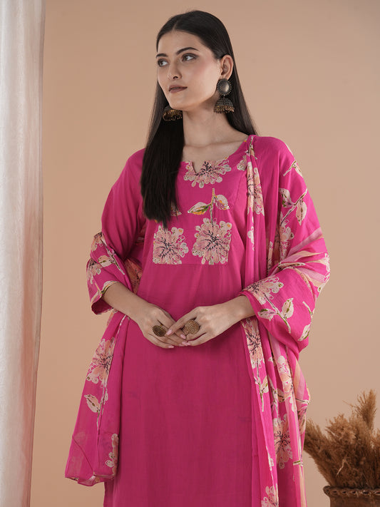MRP (Inclusive of all taxes)Regular price ₹ 1,609.00₹ 1,609.00 Regular priceUnit price / per₹ 4,399.00Sale priceM L XL 2XL add to cartSale{"id":7522301870166,"title":"Floral Printed \u0026 Embroidered Straight Kurta with Pant \u0026 Dupatta - Pink","handle":"floral-printed-embroidered-straight-kurta-with-pant-dupatta-pink-13","description":"\u003ch1\u003eHighlights\u003cbr\u003e\n\u003c\/h1\u003e\n\u003cp\u003e\u003cbr\u003e-Straight Fit Kurta \u003cbr\u003e-Floral Printed Yoke \u003cbr\u003e-Comes with Ethnic Printed Dupatta\u003c\/p\u003e\n\u003ch1\u003eFabric \u0026amp; Colour\u003c\/h1\u003e\n\u003cp\u003e\u003cbr\u003eTop Colour: Pink\u003cbr\u003eTop Fabric: Cotton\u003cbr\u003eBottom Colour: Pink\u003cbr\u003eBottom Fabric: Cotton Blend\u003cbr\u003eDupatta Colour: Pink\u003cbr\u003eDupatta Fabric: Pure Cotton\u003c\/p\u003e\n\u003ch1\u003eSpecifications\u003c\/h1\u003e\n\u003cp\u003e\u003cbr\u003eTop Design: Solid \u003cbr\u003eTop Craft: Embroidery, Plain and Prints\u003cbr\u003eTop Shape: Straight\u003cbr\u003eNeck: Round Neckline\u003cbr\u003eSleeve Length: Three-Quarter Sleeves\u003cbr\u003eTop Length: Knee Length\u003cbr\u003eHemline: Straight\u003cbr\u003eSlit: Side Slits\u003c\/p\u003e\n\u003cp\u003eBottom Type: Trousers\u003cbr\u003eBottom Closure: Slip-On\u003cbr\u003eWaistband: Partially Elasticated\u003c\/p\u003e\n\u003cp\u003eDupatta Pattern: Printed\u003cbr\u003eDupatta Border: Printed\u003c\/p\u003e\n\u003cp\u003eWash Care: Hand Wash\u003c\/p\u003e\n\u003cp\u003eLength (in inches)\u003cbr\u003eKurta – 45, Sleeves – 17,\u003cbr\u003eBottom – 38\u003c\/p\u003e\n\u003cp\u003eModel’s Height: 5’7”. Wearing Size S.\u003c\/p\u003e\n\u003ch1\u003eProduct Information\u003c\/h1\u003e\n\u003cp\u003e\u003cbr\u003eManufactured\/Packed\/Marketed By:\u003cbr\u003eFashor Lifestyle Pvt. Ltd.\u003cbr\u003e28\/30, Sudarshanpura Industrial Area,\u003cbr\u003eJaipur - 302006.\u003cbr\u003eCountry of Origin: India\u003c\/p\u003e","published_at":"2025-03-09T09:10:22+05:30","created_at":"2025-03-09T08:35:18+05:30","vendor":"FASHOR","type":"3P Kurta Set","tags":["1001-2000","29509","2XL","All Styles","casualwear","colour_pink","craft_embroidery","craft_plain-and-prints","design_solid","fabric_cotton","KURTI","kurtis","M","meta-size-chart-","now-trending","shape_straight","workwear"],"price":160900,"price_min":160900,"price_max":160900,"available":true,"price_varies":false,"compare_at_price":439900,"compare_at_price_min":439900,"compare_at_price_max":439900,"compare_at_price_varies":false,"variants":[{"id":42174346690646,"title":"M","option1":"M","option2":null,"option3":null,"sku":"38-STA29509B5FS","requires_shipping":true,"taxable":false,"featured_image":{"id":34153026584662,"product_id":7522301870166,"position":6,"created_at":"2025-03-09T08:48:12+05:30","updated_at":"2025-06-09T18:45:52+05:30","alt":null,"width":1080,"height":1440,"src":"\/\/fashor.com\/cdn\/shop\/files\/30011_6.jpg?v=1749474952","variant_ids":[42174346690646,42174346723414,42174346756182,42174346788950]},"available":true,"name":"Floral Printed \u0026 Embroidered Straight Kurta with Pant \u0026 Dupatta - Pink - M","public_title":"M","options":["M"],"price":160900,"weight":0,"compare_at_price":439900,"inventory_quantity":1,"inventory_management":"shopify","inventory_policy":"deny","barcode":null,"featured_media":{"alt":null,"id":26571375444054,"position":6,"preview_image":{"aspect_ratio":0.75,"height":1440,"width":1080,"src":"\/\/fashor.com\/cdn\/shop\/files\/30011_6.jpg?v=1749474952"}},"requires_selling_plan":false,"selling_plan_allocations":[],"quantity_rule":{"min":1,"max":null,"increment":1}},{"id":42174346723414,"title":"L","option1":"L","option2":null,"option3":null,"sku":"40-STA29509B5FS","requires_shipping":true,"taxable":false,"featured_image":{"id":34153026584662,"product_id":7522301870166,"position":6,"created_at":"2025-03-09T08:48:12+05:30","updated_at":"2025-06-09T18:45:52+05:30","alt":null,"width":1080,"height":1440,"src":"\/\/fashor.com\/cdn\/shop\/files\/30011_6.jpg?v=1749474952","variant_ids":[42174346690646,42174346723414,42174346756182,42174346788950]},"available":false,"name":"Floral Printed \u0026 Embroidered Straight Kurta with Pant \u0026 Dupatta - Pink - L","public_title":"L","options":["L"],"price":160900,"weight":0,"compare_at_price":439900,"inventory_quantity":0,"inventory_management":"shopify","inventory_policy":"deny","barcode":null,"featured_media":{"alt":null,"id":26571375444054,"position":6,"preview_image":{"aspect_ratio":0.75,"height":1440,"width":1080,"src":"\/\/fashor.com\/cdn\/shop\/files\/30011_6.jpg?v=1749474952"}},"requires_selling_plan":false,"selling_plan_allocations":[],"quantity_rule":{"min":1,"max":null,"increment":1}},{"id":42174346756182,"title":"XL","option1":"XL","option2":null,"option3":null,"sku":"42-STA29509B5FS","requires_shipping":true,"taxable":false,"featured_image":{"id":34153026584662,"product_id":7522301870166,"position":6,"created_at":"2025-03-09T08:48:12+05:30","updated_at":"2025-06-09T18:45:52+05:30","alt":null,"width":1080,"height":1440,"src":"\/\/fashor.com\/cdn\/shop\/files\/30011_6.jpg?v=1749474952","variant_ids":[42174346690646,42174346723414,42174346756182,42174346788950]},"available":false,"name":"Floral Printed \u0026 Embroidered Straight Kurta with Pant \u0026 Dupatta - Pink - XL","public_title":"XL","options":["XL"],"price":160900,"weight":0,"compare_at_price":439900,"inventory_quantity":0,"inventory_management":"shopify","inventory_policy":"deny","barcode":null,"featured_media":{"alt":null,"id":26571375444054,"position":6,"preview_image":{"aspect_ratio":0.75,"height":1440,"width":1080,"src":"\/\/fashor.com\/cdn\/shop\/files\/30011_6.jpg?v=1749474952"}},"requires_selling_plan":false,"selling_plan_allocations":[],"quantity_rule":{"min":1,"max":null,"increment":1}},{"id":42174346788950,"title":"2XL","option1":"2XL","option2":null,"option3":null,"sku":"44-STA29509B5FS","requires_shipping":true,"taxable":false,"featured_image":{"id":341530