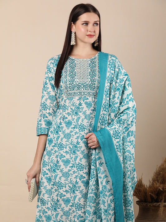 Ethnic Floral Printed Embroidered Straight Fit Kurta...